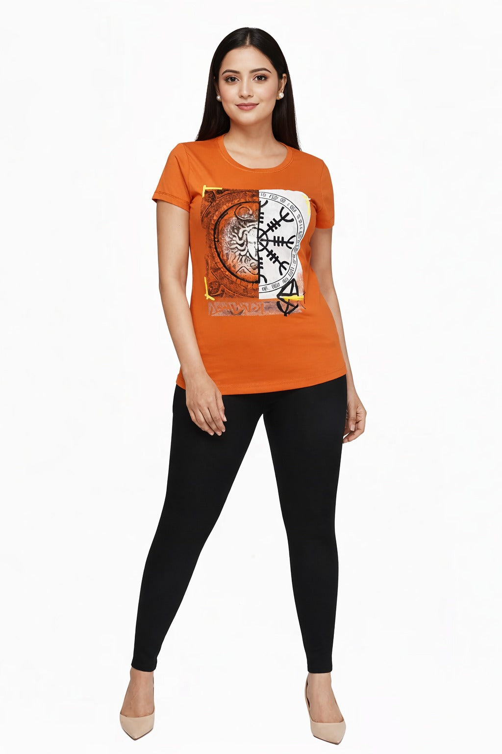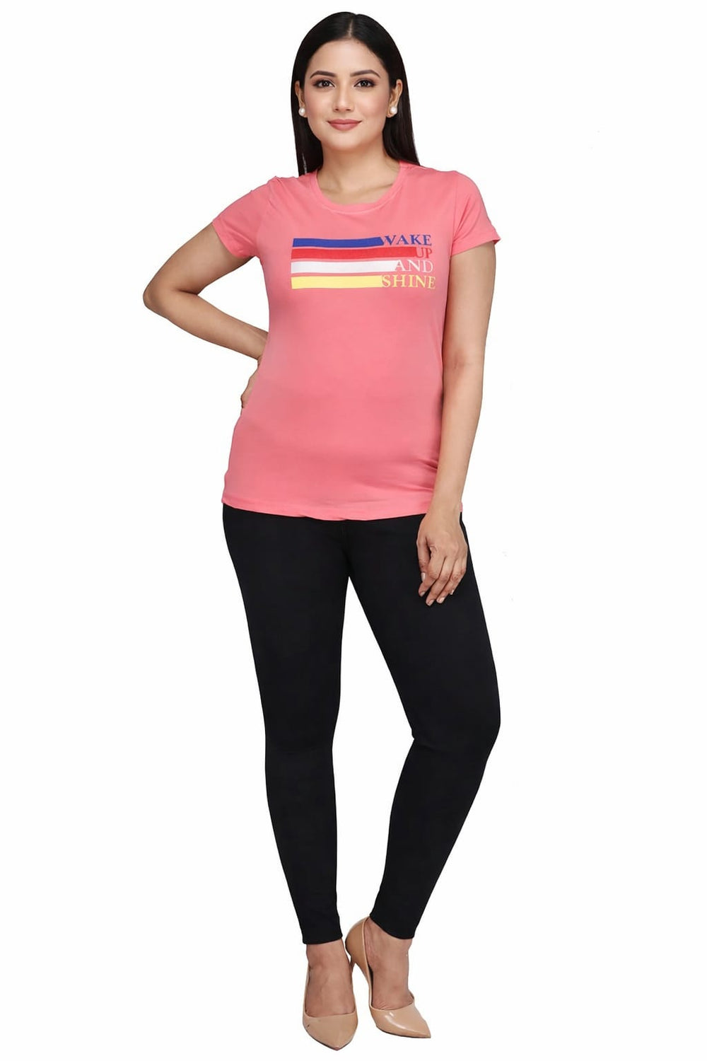 Comfort Lady Chest Print Half Sleeve Cotton Round Neck T-Shirt