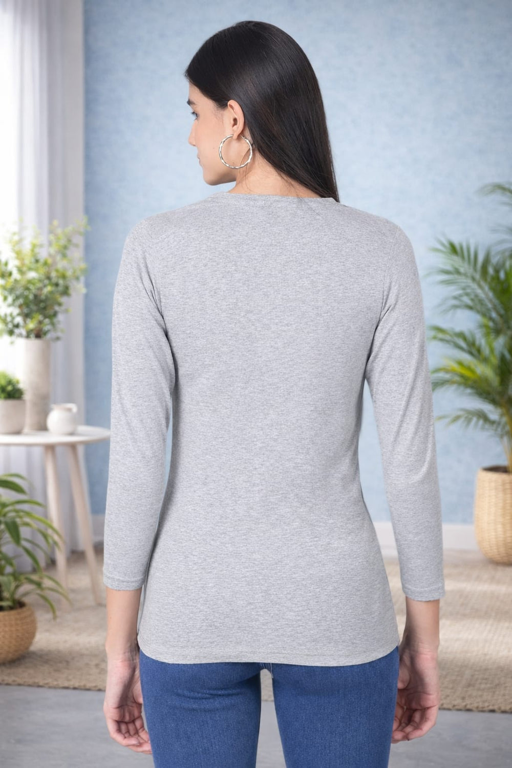 Comfort Lady Regular Fit Round Neck Plain Full Sleeve T-Shirt